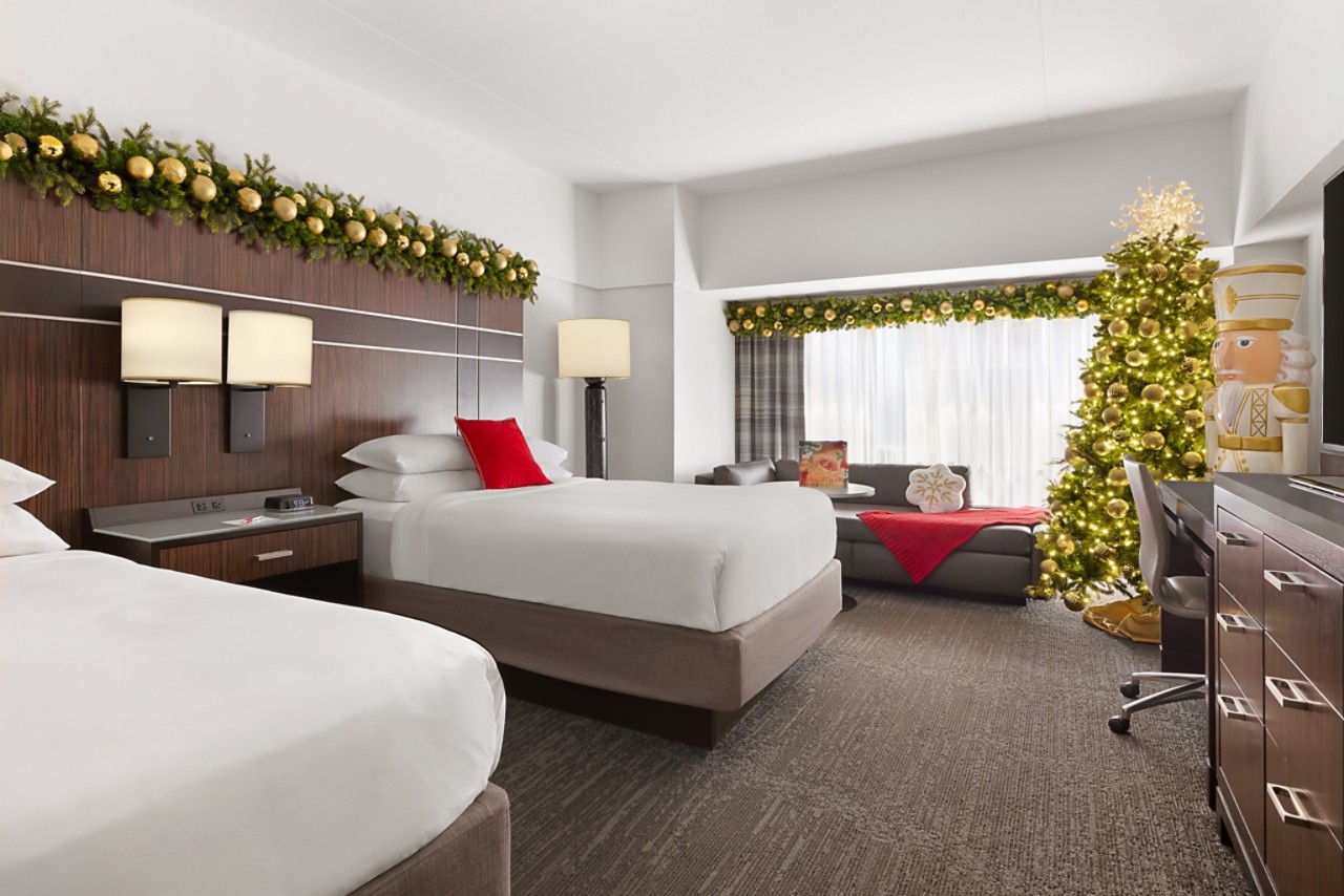 Stay in a room Santa would approve featuring festive décor by Christmas in America! Enjoy a 40th Anniversary keepsake ornament inspired by our iconic elevators, and our Levain cookie concierge delivering sweet holiday joy.